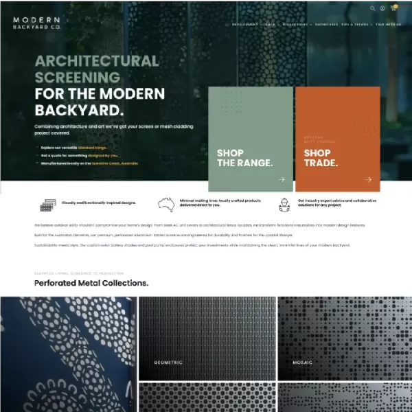 The brief was as ambitious as it was exciting: create an ecommerce platform that reflected Modern Backyards Co.'s exacting standards while supporting a dual audience - trade professionals and retail customers. With products and collections still in development, we had to design a structure flexible enough to accommodate custom orders and evolving product ranges.